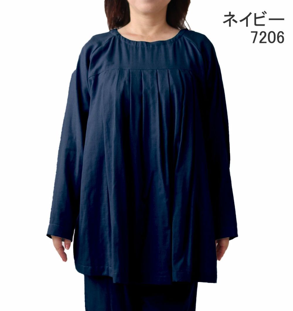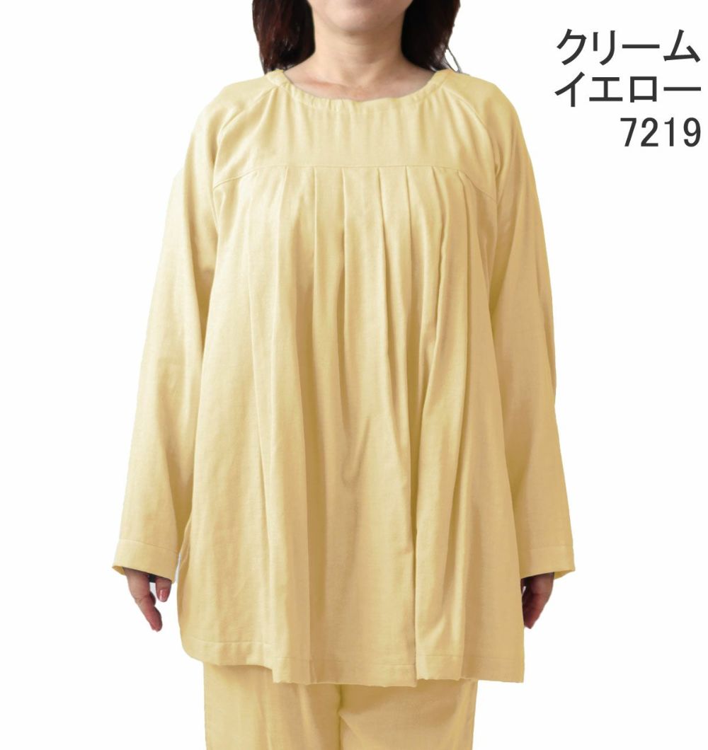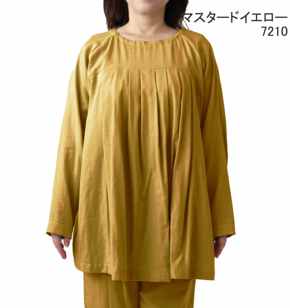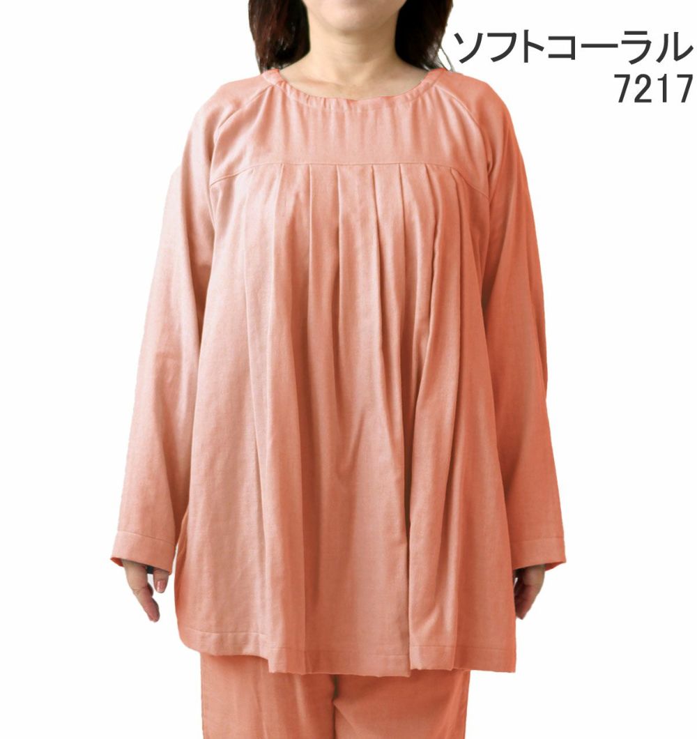 昔ながらの和晒製法で特別やわらか 和晒京ふたえガーゼレディースパジャマ 上下セット・長袖/かぶり/Aライン/胸元切替タック 【オーダーメイド】