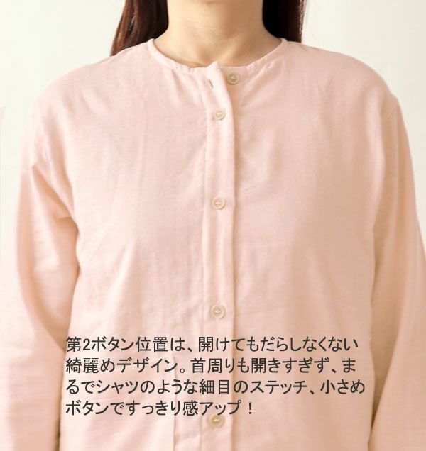 他の画像を見る 胸パットなしでも1枚で安心デザイン 和晒京ふたえガーゼレディースパジャマ上着単品・長袖/かぶり/ラウンドネック 【オーダーメイド】 春 秋 綿 ガーゼ 胸目立たない 【税込価格】 ¥ 7,150 税込 3段タックデザインで胸パット無しでも透けにくいダブルガーゼパジャマの上着単品のみでの販売。レディースXS~5L。和晒製法で特別ふわふわ柔らか。適度な保温性で春・秋はもちろん一年中お使いいただけます。さらに袖丈・着丈の長さを調整可能です。 2.00 (1) 詳細を見る お気に入りに登録する