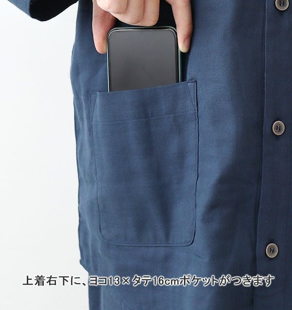 | 仕様 | 長袖 前開き 襟あり 右下ポケット |