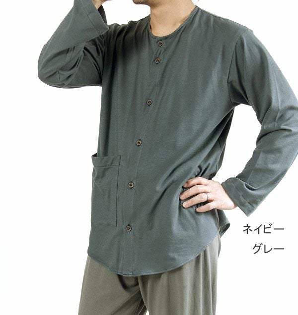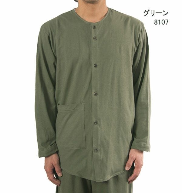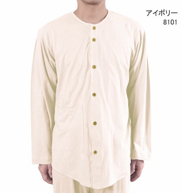 | 仕様 | 長袖 長ズボン 上下セット /上着:前開き 襟なし 右下大ポケット /ズボン:前立て(社会の窓)つき |