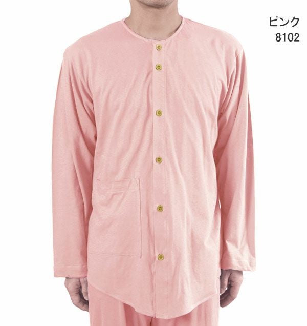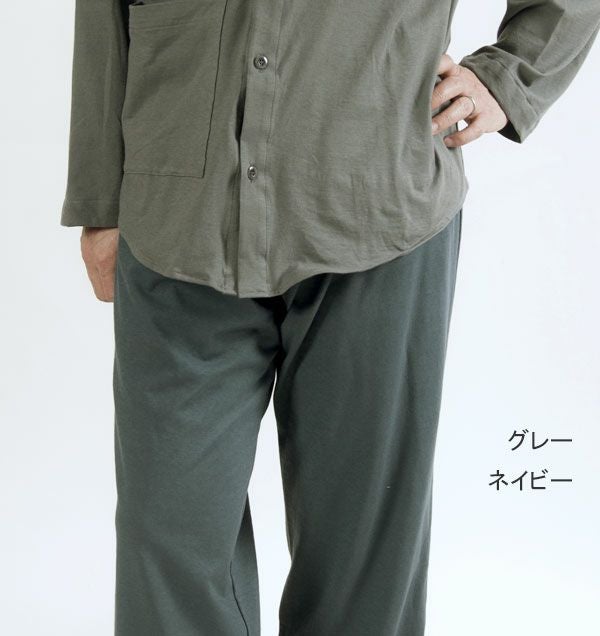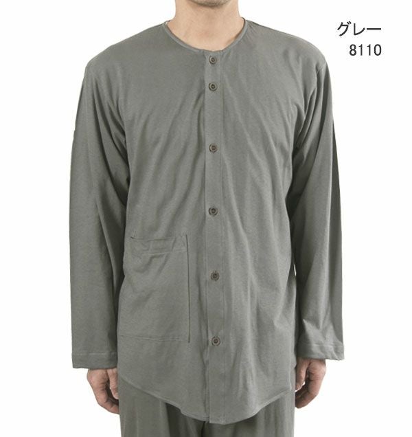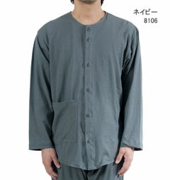 やわらか天竺ニットメンズ入院パジャマ 上下セット・長袖/前開き/襟なし