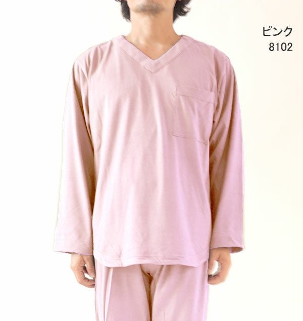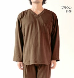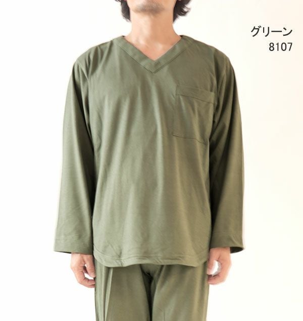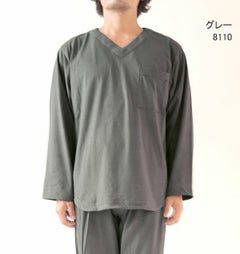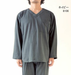 やわらか天竺ニットメンズパジャマ 上着単品・長袖/かぶり/Vネック