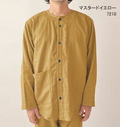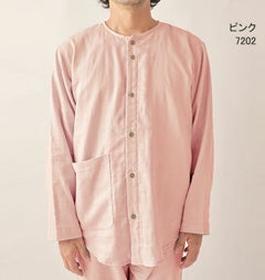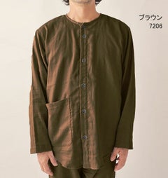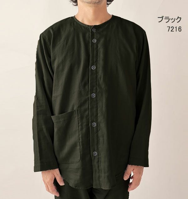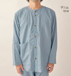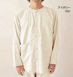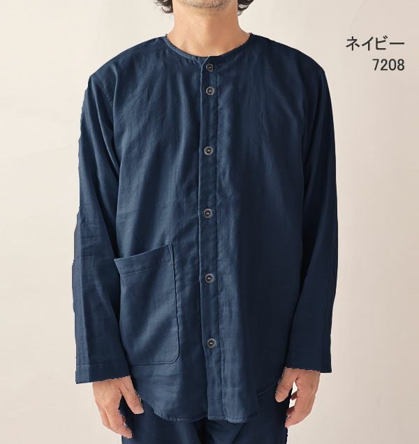 やさしいガーゼが入院生活をサポート 和晒京ふたえガーゼのメンズ入院パジャマ 上下セット・長袖/前開き/襟なし 【オーダーメイド】