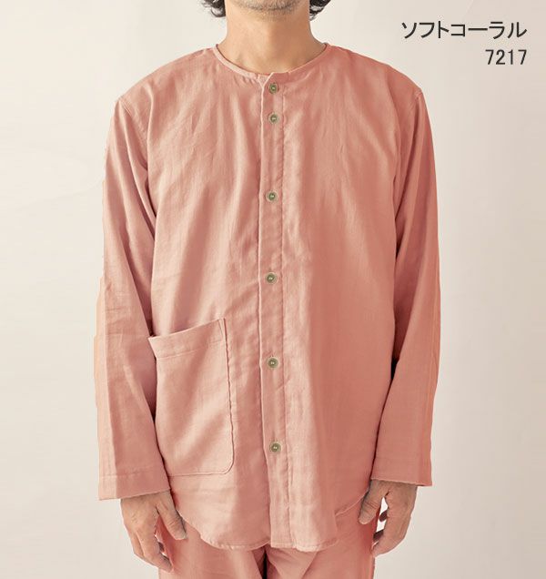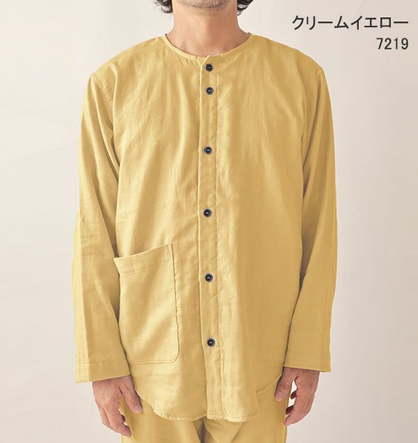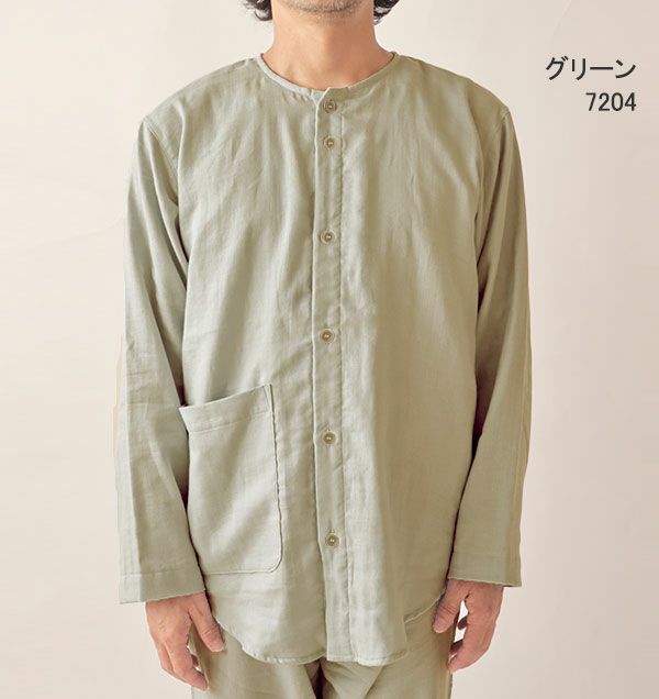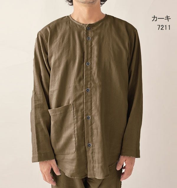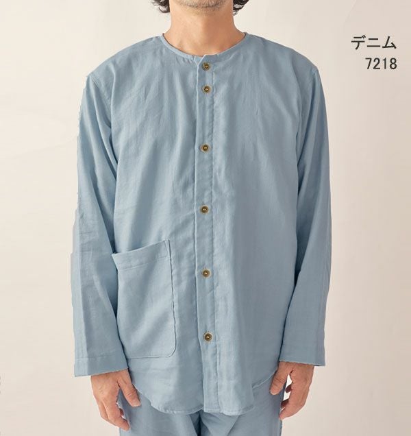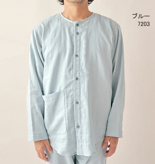ダブルガーゼ長袖襟ありパジャマ
