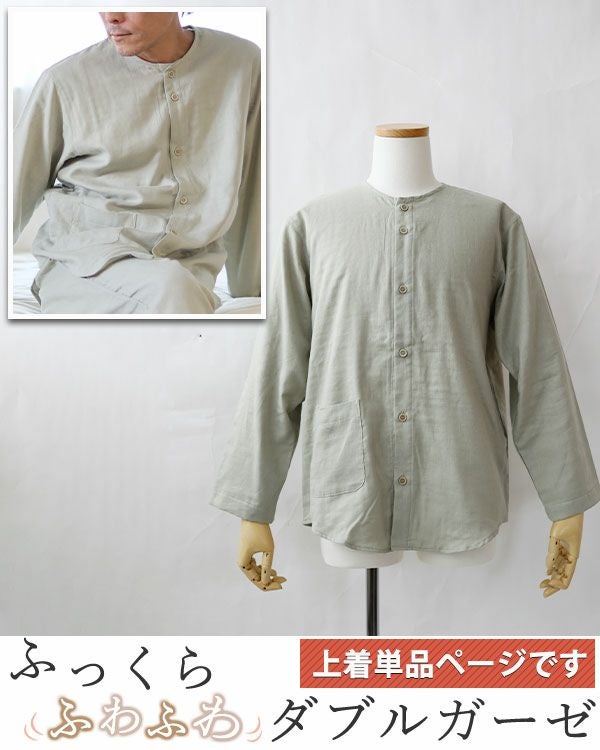 昔ながらの和晒製法が生み出す特別な風合い 和晒京ふたえガーゼメンズパジャマ上着単品・長袖/前開き/襟なし 【オーダーメイド】