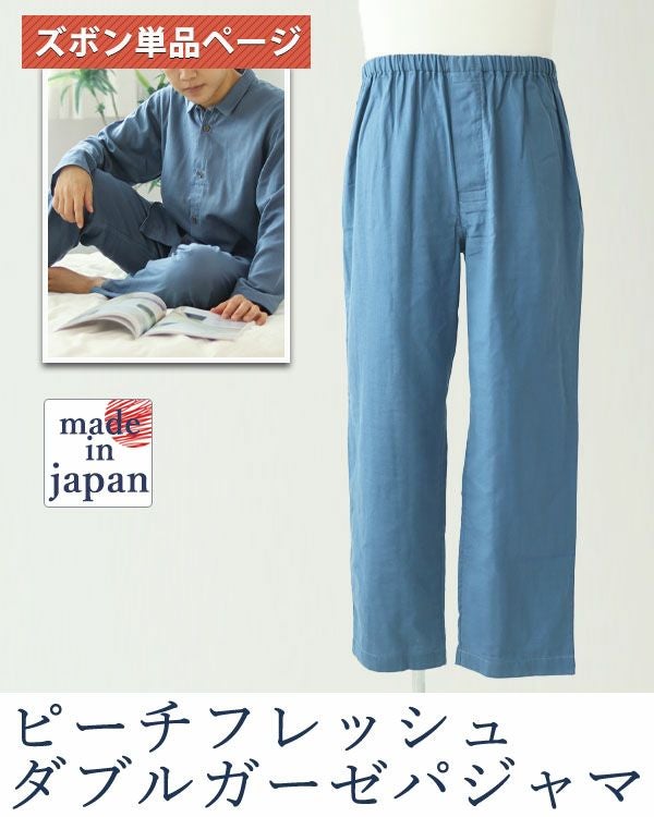 SEK取得の日清紡ピーチフレッシュ加工で清潔 抗菌防臭ダブルガーゼメンズパジャマズボン単品/長ズボン 【オーダーメイド】