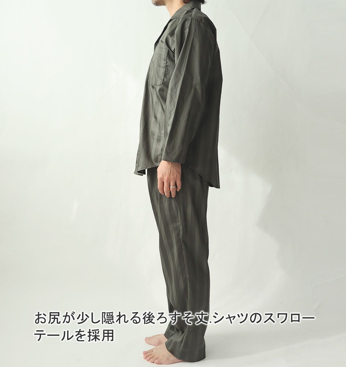 他の画像を見る あのホテルのパジャマのよう、高級感あるサテンストライプ サテンストライプメンズパジャマズボン単品・長ズボン 【オーダーメイド】 春 秋 綿 サテン 【税込価格】 ¥ 5,170 税込 サテンストライプのメンズパジャマズボンです。XS~5Lまで。ホテルに置いてあるような高級感あふれる美しい光沢と柔らかくなめらかな肌触り。さらに綿100%なので吸湿性もよく、パジャマに最適な素材です。ほどよい保温性で春秋におすすめ。 5.00 (1) 詳細を見る お気に入りに登録する