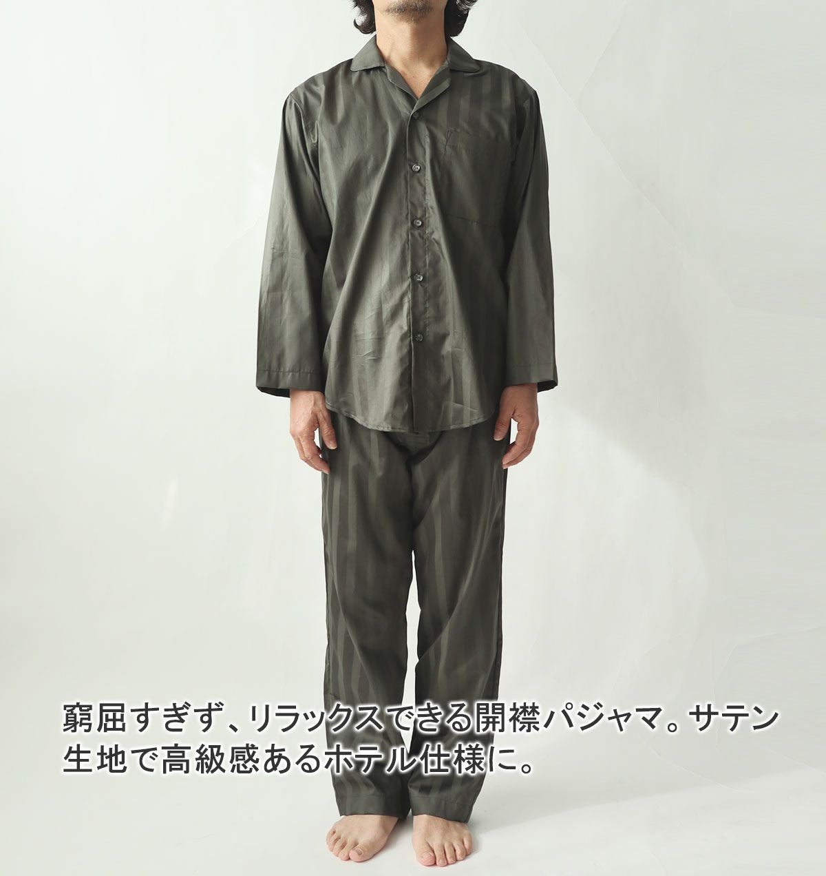 他の画像を見る あのホテルのパジャマのよう、高級感あるサテンストライプ サテンストライプメンズパジャマ上下セット・長袖/前開き/襟なし 【オーダーメイド】 春 秋 綿 サテン 【税込価格】 ¥ 11,330 税込 ホテルに置いてあるような高級感あふれるサテンストライプパジャマです。メンズXS~5Lまで。美しい光沢と柔らかくなめらかな肌触りで一日を疲れを癒してくれます。綿100%なので吸湿性もよく、ほどよい保温性で春秋におすすめです。 (0) 詳細を見る お気に入りに登録する