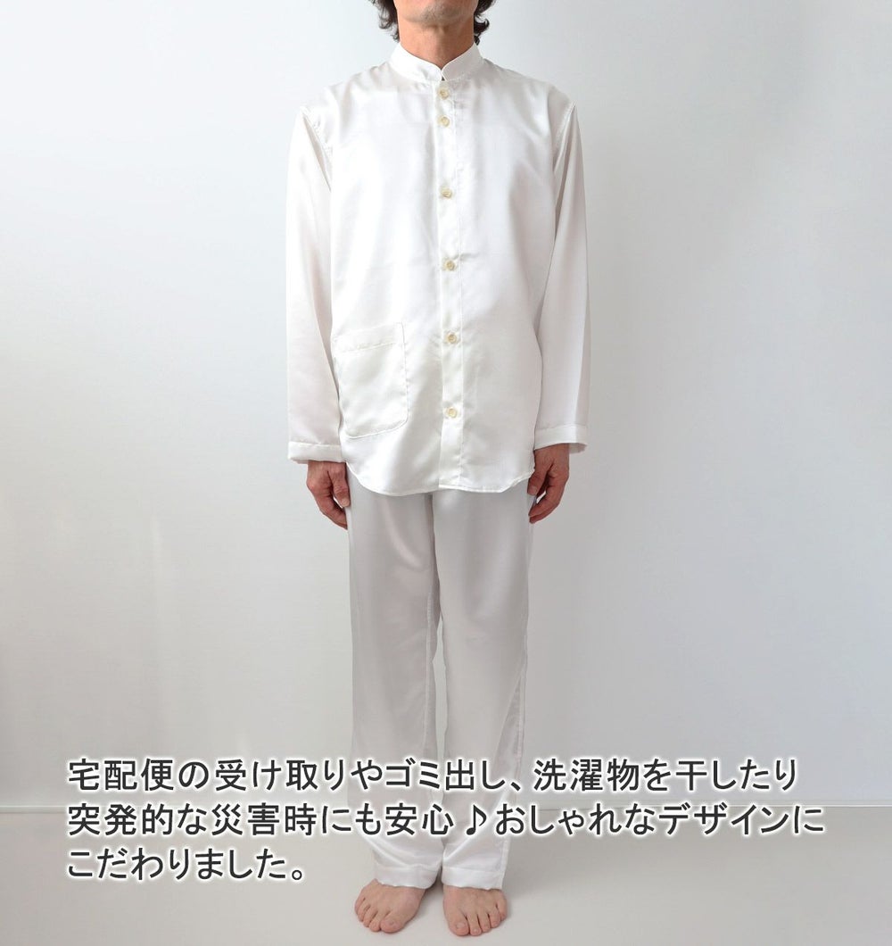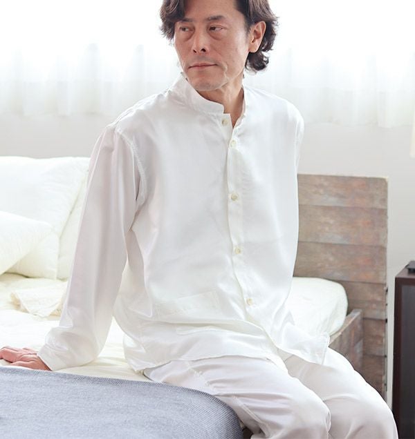 川俣シルクサテンメンズパジャマ 上下セット・長袖/前開き/バンドカラー