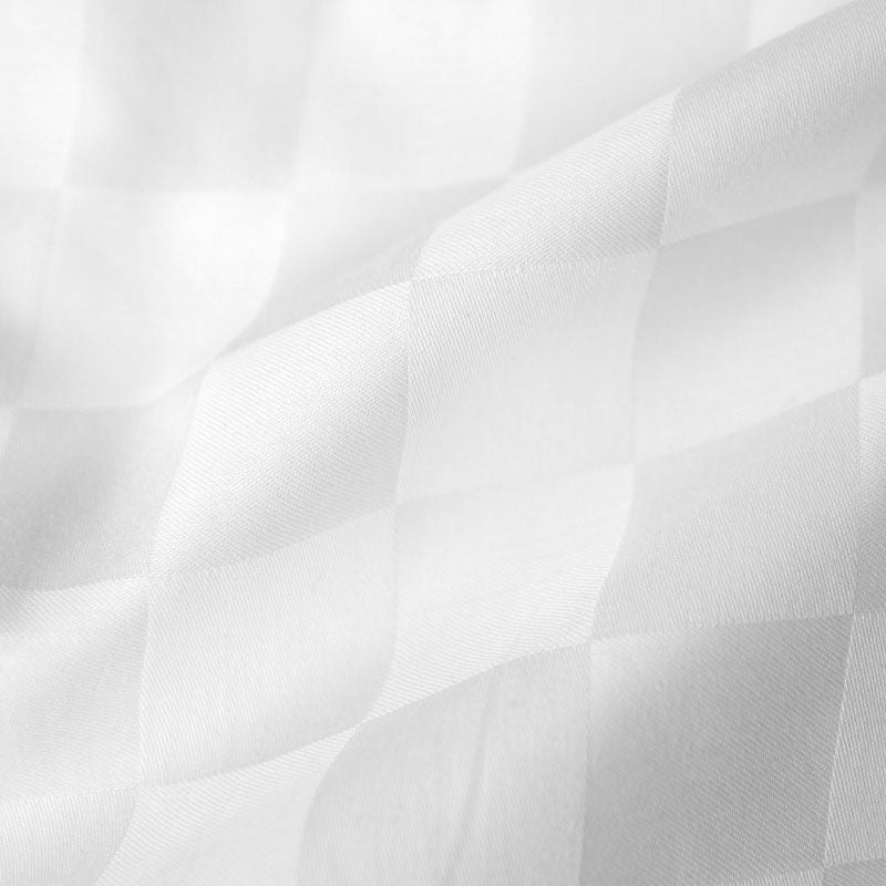 サテン織りの一種である昼夜織りは、光沢がある表面とマイルドな裏面が交互に織られていることで、光沢差が昼と夜のコントラストのように見えます。光の反射の違いによって生まれるチェック柄はプリントのような平面的なものと違い、大変高級感がありスタイリッシュなデザインです。まるで、高級ホテルでくつろいでいるかのような贅沢なリラックスタイムをどうぞお楽しみください。