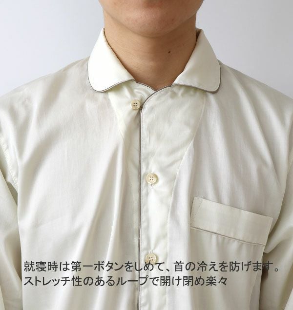 他の画像を見る 超長綿ならではの光沢と肌触りでラグジュアリーなひとときを スーピマ超長綿メンズパジャマ上着単品・長袖/前開き/開襟 【オーダーメイド】 春 秋 綿 サテン 【税込価格】 ¥ 8,140 税込 定番オープンカラーのサテンパジャマの上着単品です。紳士用、XS~5Lまで。スーピマ超長綿を100%使用し、落ち着いた上品な光沢に、滑らかで柔らかな肌触りが一日の疲れを癒してくれます。袖丈、着丈を調整できるセミオーダーメイド対応。 5.00 (1) 詳細を見る お気に入りに登録する