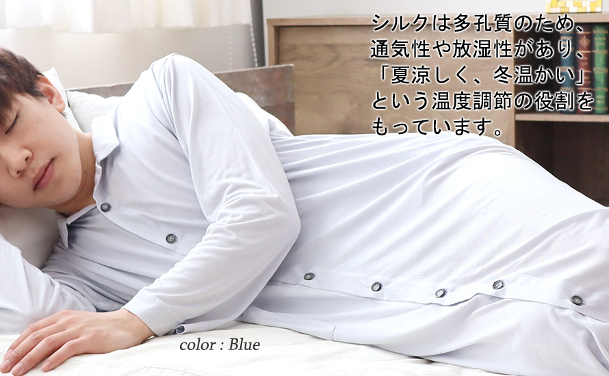 シルクニットメンズスリーパー・長袖/前開き/襟あり