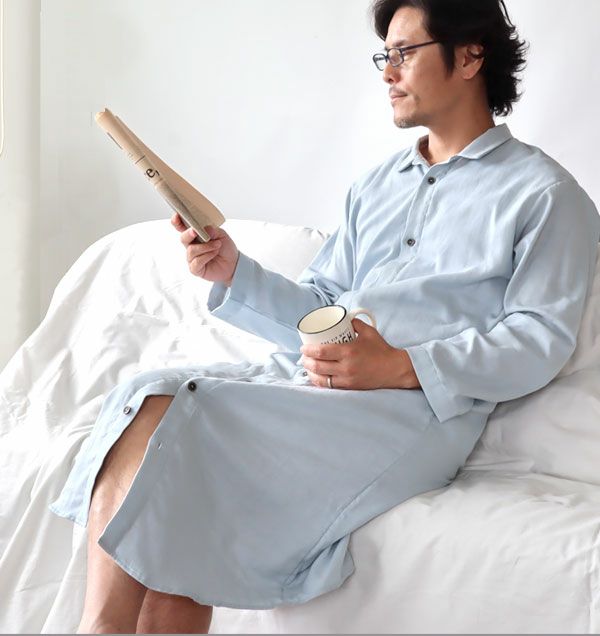 解放感とふわふわした柔らかさに包まれる 和晒京ふたえガーゼメンズスリーパー・長袖/前開き/襟あり 【オーダーメイド】