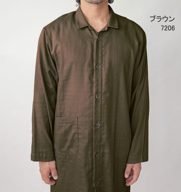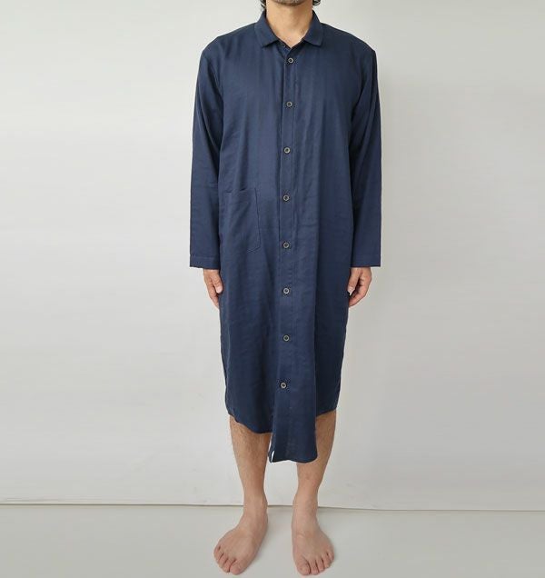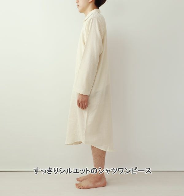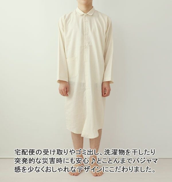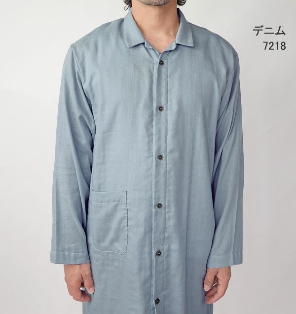 地球にもお肌にも優しい特別な風合い 40オーガニックコットンダブルガーゼメンズスリーパー・長袖/前開き/襟あり 【オーダーメイド】