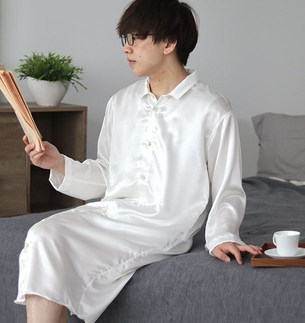 誰もが一度は憧れる、国産シルクサテンのメンズスリーパーです!美しい光沢とつるつる滑らかな肌触りで身も心も極上の気分に誘ってくれます。大切な方への贈答用にも人気の素材です。