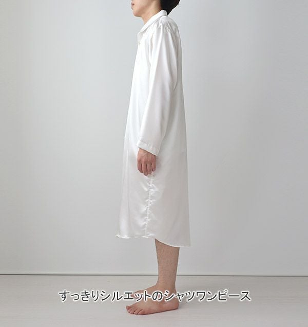 東洋一の国産シルク 川俣シルクサテンメンズスリーパー・長袖/前開き/襟あり 【オーダーメイド】