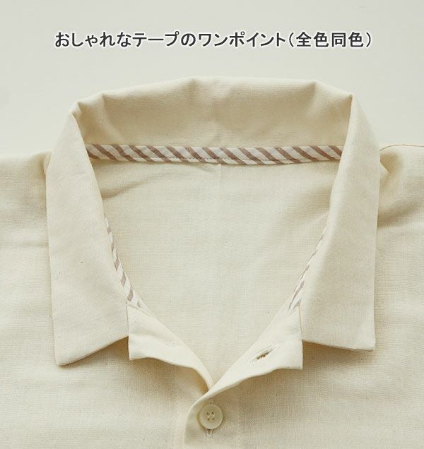 • ふわふわ柔らかダブルガーゼメンズパジャマ長袖/前開き/襟あり