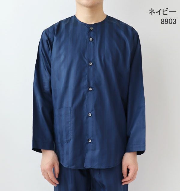 東洋一の国産シルク 川俣シルクサテンメンズパジャマ 上下セット・長袖/前開き/襟なし 【オーダーメイド】