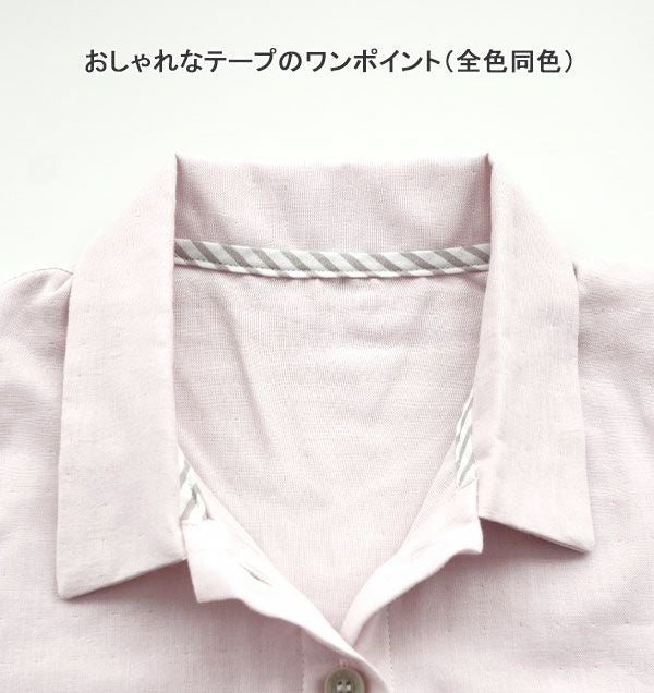 40オーガニックコットンダブルガーゼレディースパジャマ上着単品・長袖/前開き/襟あり