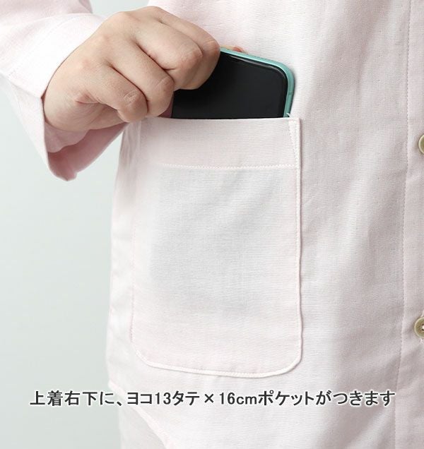 | 仕様 | 長袖 前開き 襟あり 右下ポケット |