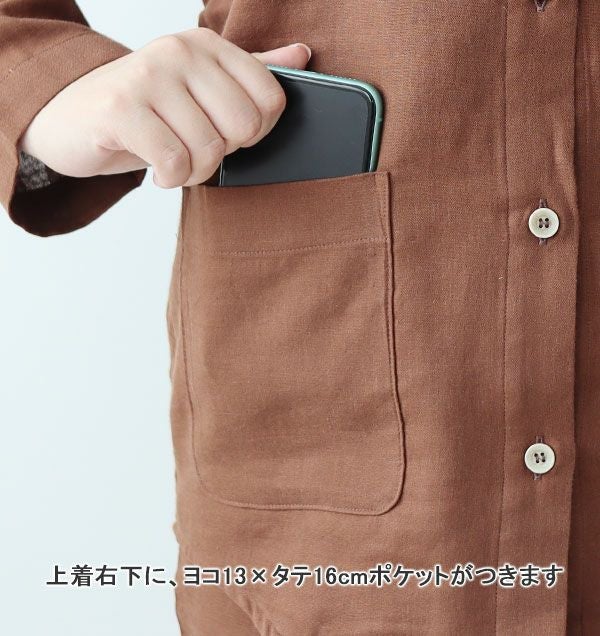 | 仕様 | 長袖 前開き 襟なし 右下ポケット |