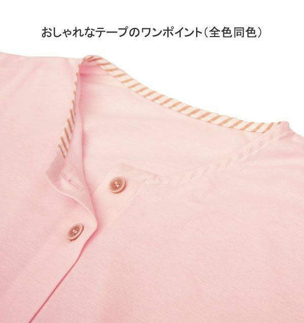 やわらか天竺ニットレディースパジャマ 上着単品・長袖/前開き/襟なし