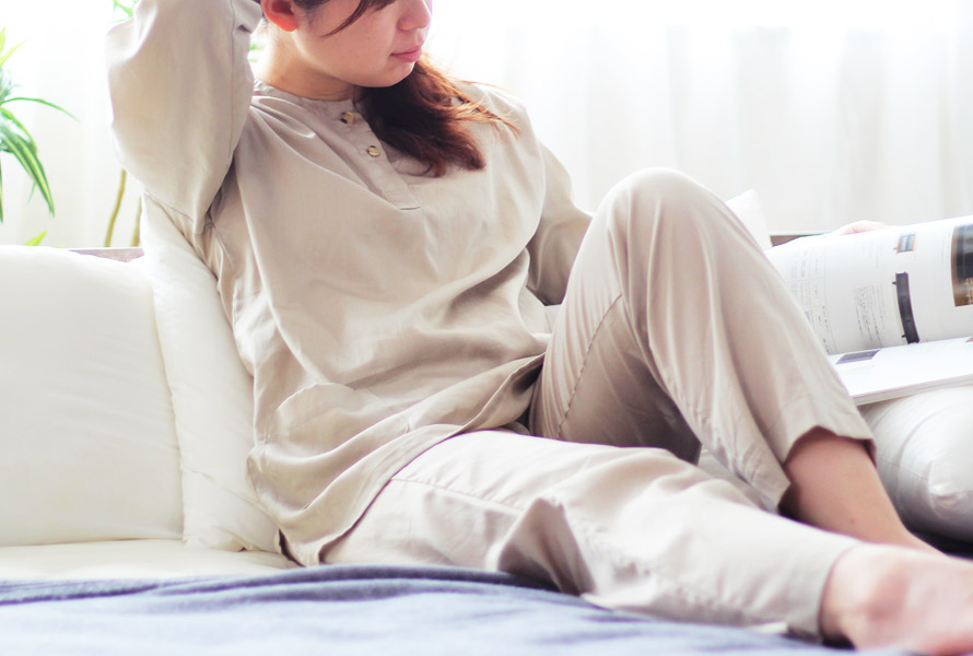 スーピマ超長綿のドレープ性(しなやかさ)ゆえに、包み込むように柔らかく、パジャマを着ていないかのように生地がすいついてくれます。
