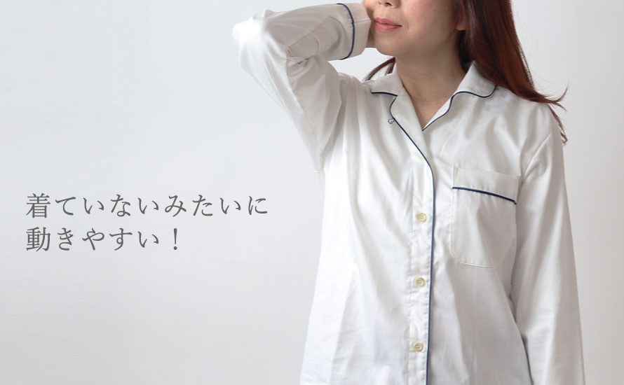 1晩に平均20~30回の寝返りをするといわれています。 身体の一部に負担をかけない為にも、血行不良を防ぐ為にも必要です。締め付け感がなく、体を動かしやすい無理のないゆったりしたデザインです。
