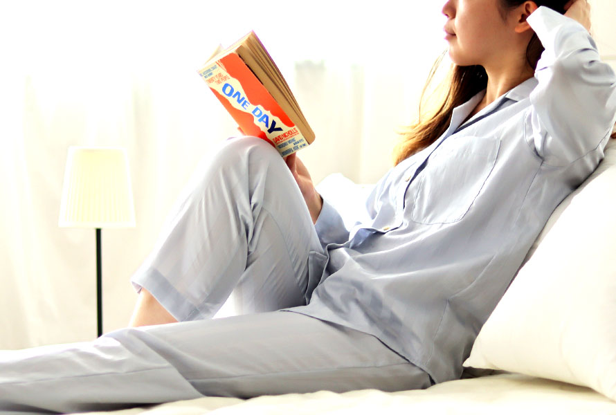 一般的なパジャマは40番糸を使用するのですが、より細くて長い60番手の長繊維綿を使用。柔らかく滑らかで肌にほどよくフィット。細い糸をつくるためには原料となる綿花の繊維が長いものを使う必要があり、長ければ長いほど、品質が高く、安定したものになります。ホテル仕様のパジャマで贅沢なひとときをお過ごしください。
