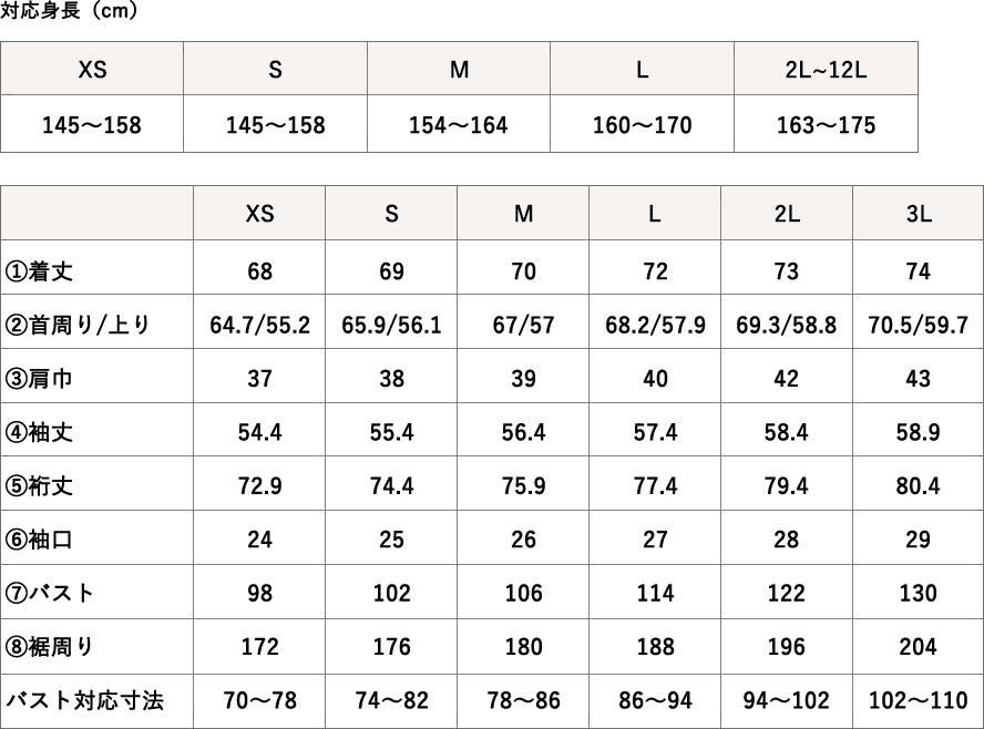 | サイズ | XS~3L (レディース) 【モデル:身長158cm Sサイズ着用】 |
