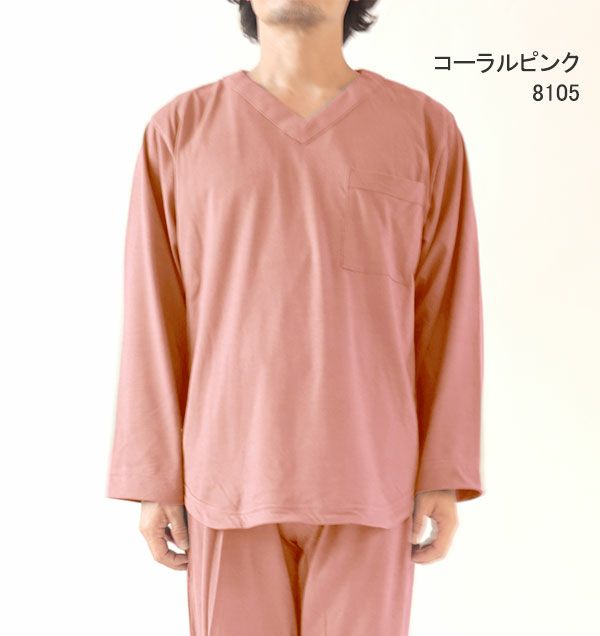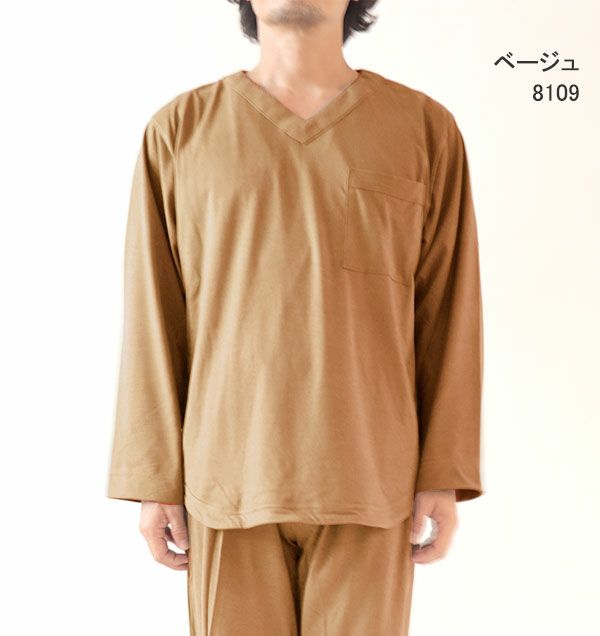 やわらか天竺ニットメンズパジャマ 上着単品・長袖/かぶり/Vネック