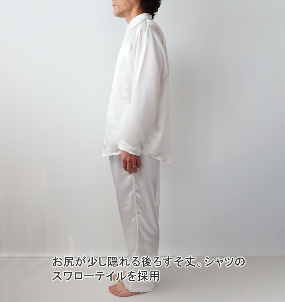 川俣シルクサテンメンズパジャマ 上下セット・長袖/前開き/バンドカラー