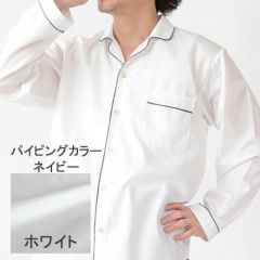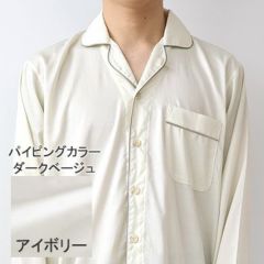 スーピマ超長綿メンズスリーパー・長袖/前開き/開襟パイピング