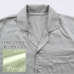 | 仕様 | パイピング 長袖 前開き 開襟 左胸ポケット |