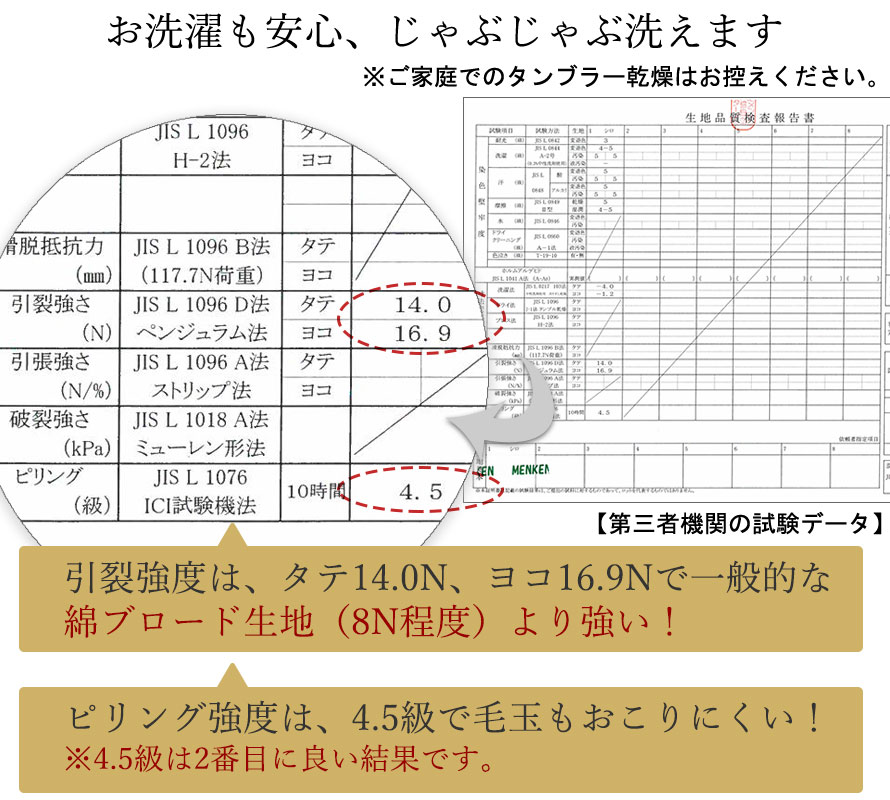 - 洗濯機でジャブジャブ洗える、優れた耐久性