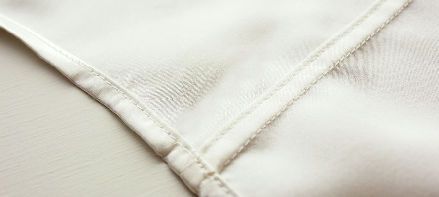 川俣シルクのすばらしさを最大限に活かすため、肌にあたる部分は丁寧で美しい折り伏せ縫いを行っております。大変丈夫でゴロゴロせず、表に糸が出る部分も少ないので、肌に優しい縫製です。
