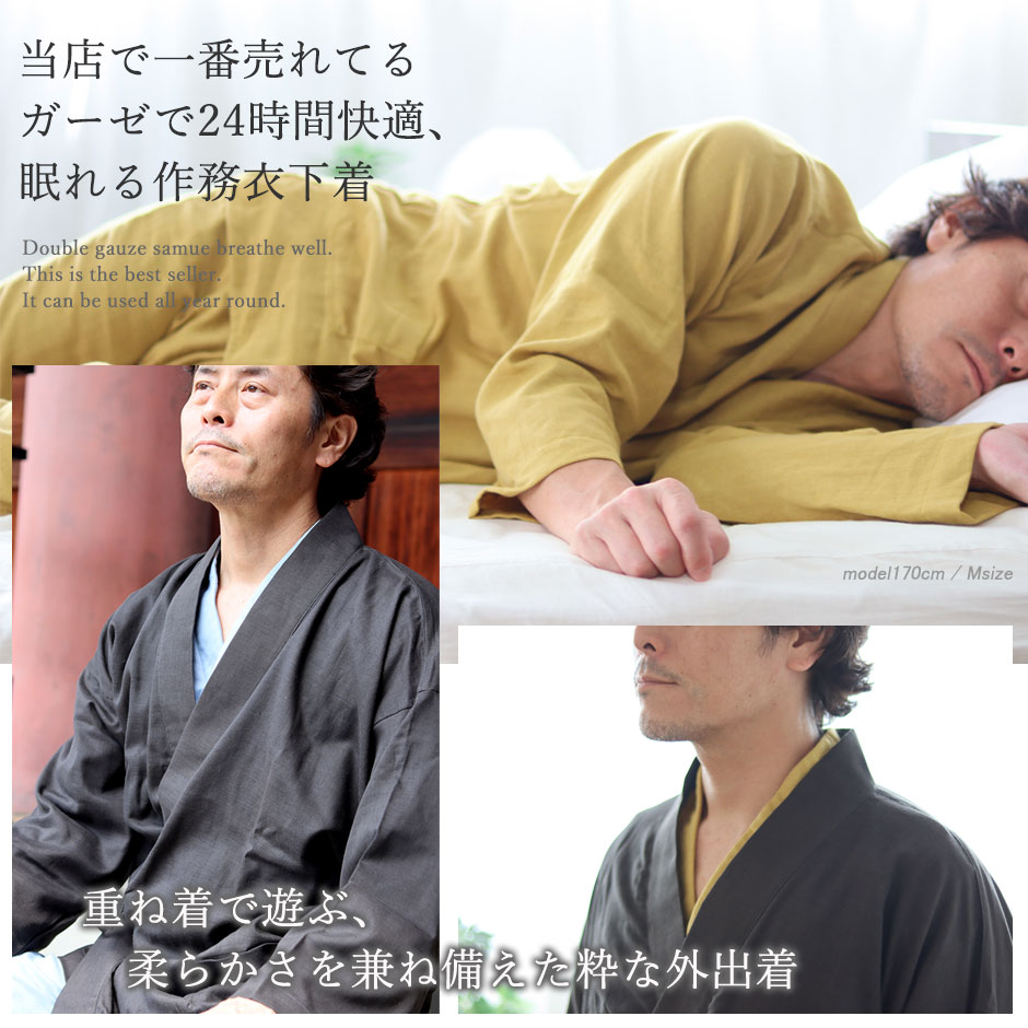 ふわふわ柔らかダブルガーゼメンズ作務衣下着単品