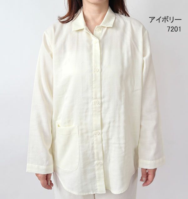 ふわふわ柔らかダブルガーゼレディースパジャマ 上下セット・長袖/前開き/襟あり