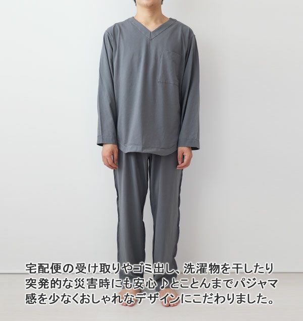 縫い目が外側だからチクチクしない! やわらか天竺ニットメンズ敏感肌パジャマ上下セット・長袖/かぶり/Vネック 【オーダーメイド】