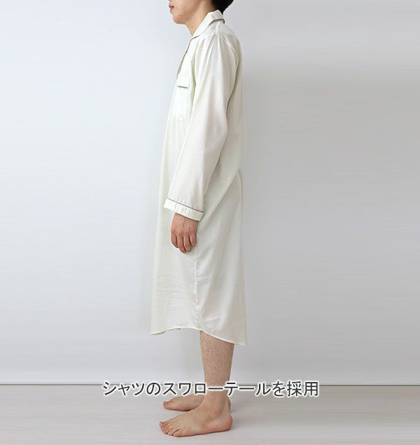 まるでシャツのようなデザインのスモールカラーデザイン。細目ステッチや小さめボタン等を採用することで、パジャマ感を抑えてすっきり感アップ!