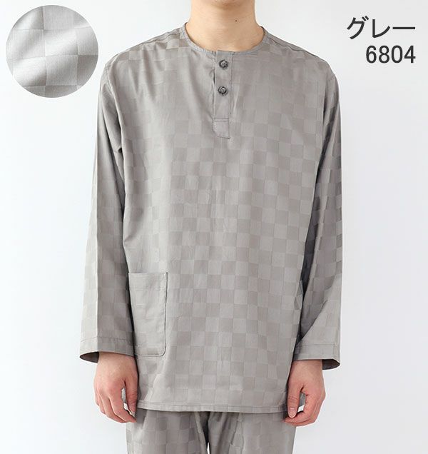 SEK取得の日清紡ピーチフレッシュ加工で清潔 抗菌防臭ダブルガーゼメンズパジャマ上下セット・長袖/かぶり/ヘンリーネック 【オーダーメイド】