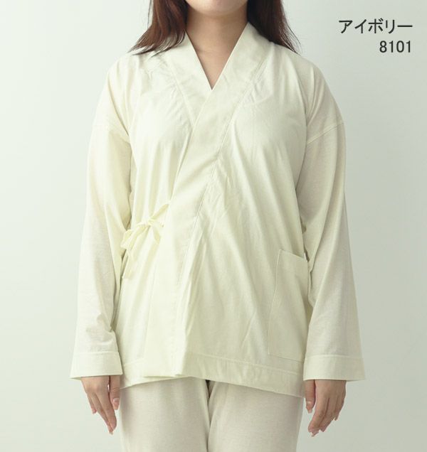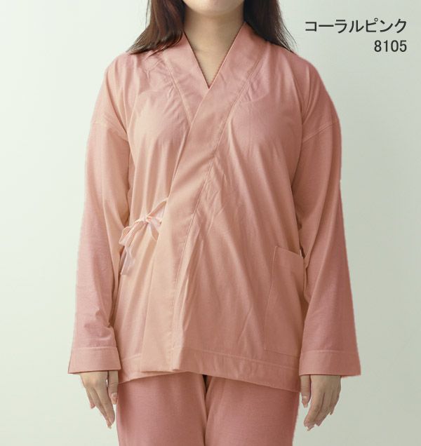 綿なのに、うれしい快適ストレッチ やわらか天竺ニットレディース作務衣上下セット・長袖【オーダーメイド】