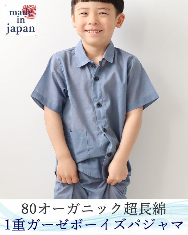 80オーガニック超長綿1重ガーゼ男の子パジャマ