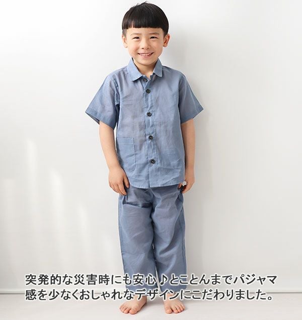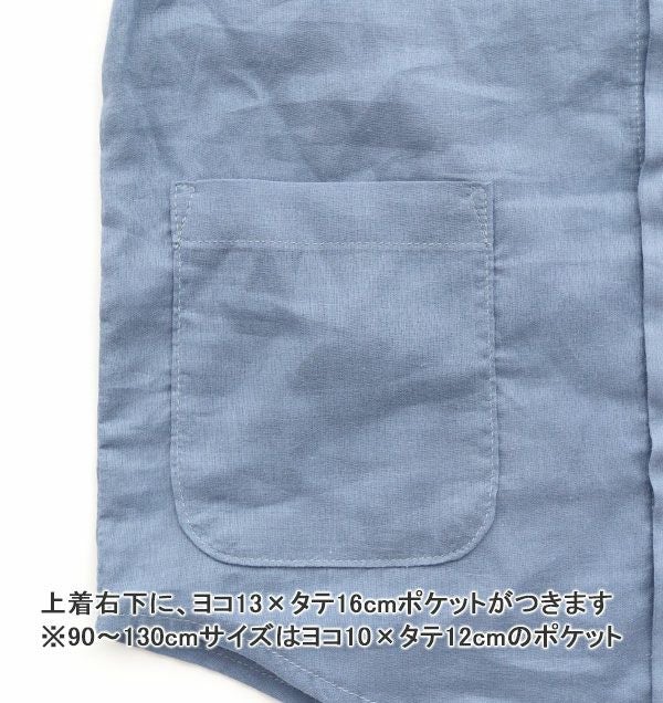 大人サイズのパジャマと同様に、パジャマ感を少なくしたおしゃれなデザイン。前開きデザインのボーイズパジャマは、お子様がボタンを留める練習にも最適です!