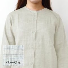 近江ちぢみ麻レディースパジャマ上下セット・長袖/前開き/襟なし