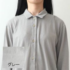 細目ステッチや小さめボタン等を採用することで、パジャマ感を抑えてシャツのような上品な見た目に。ズボンだけかえればゴミ出しはもちろん外出にも着ていけそうです!ニットサッカー生地表面の凹凸がお肌との接地面積を少なくしてくれ、汗をかいても張りつきにくく夏のおしゃれなルームウェアとしてもおすすめです!