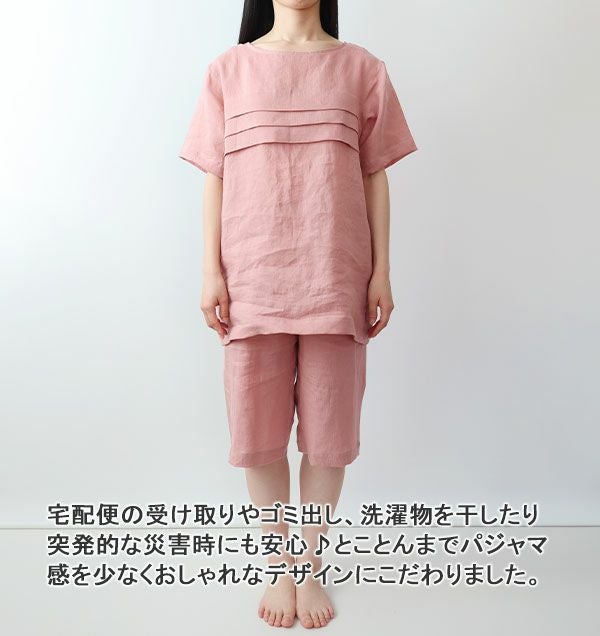 - 半袖ヘンリーネックデザインで涼しく夏のルームウェアにも