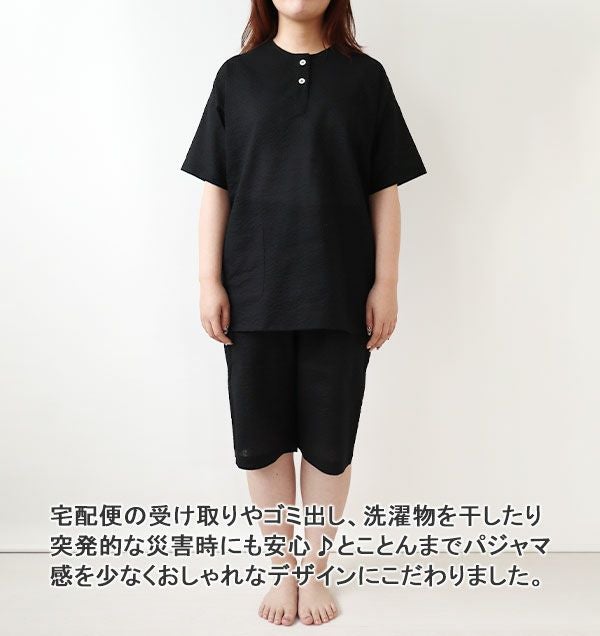 ふわっと軽やか、ベタつかない。夏の爽快パジャマ エアリーリップルレディースパジャマ上下セット・半袖/かぶり/短パン/ヘンリーネック 【オーダーメイド】