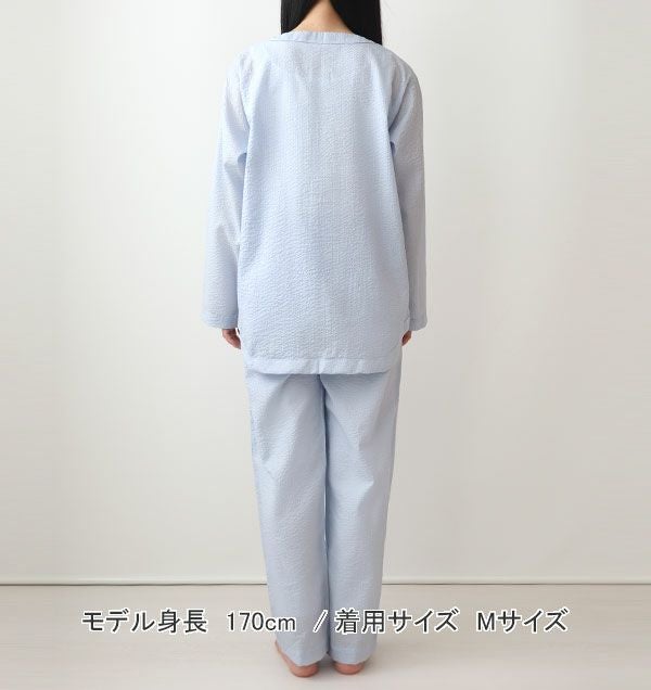 長袖で冷やさない、定番の襟あり前開きパジャマ