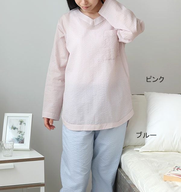 - 長袖Vネックでおしゃれな夏のルームウェアにも